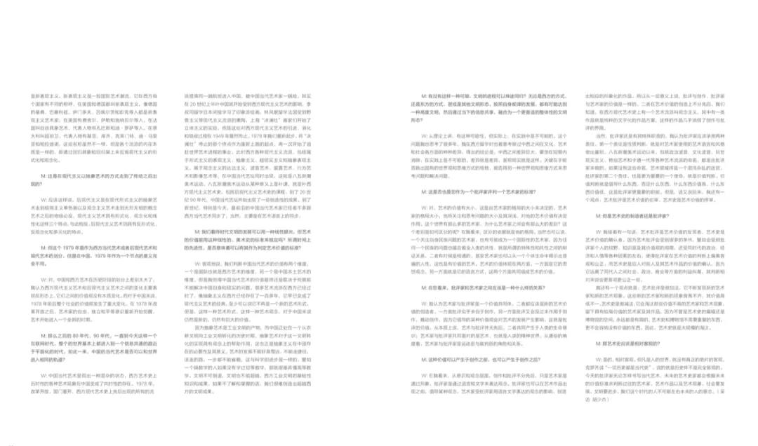 W:对,中国和西方艺术在历史阶段的划分上差别太大了。我认为西方现代主义艺术和后现代主义艺术之间的变化主要表现在形态上,它们之间的价值观没有本质变化。而对于中国来说,1978年前后整个社会的价值观发生了重大变化。在艺术领域,1978年之前是社会主义现实主义作为主流的价值观,而在1978年改革开放之后,艺术家的自由、独立和平等意识重新开始觉醒,艺术开始进入一个全新的时期。